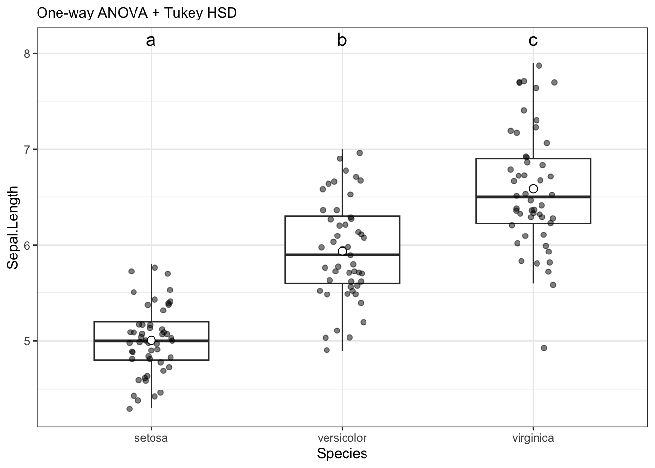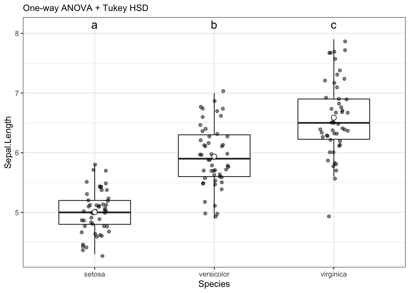 As we can see, the probability is extremely low with \(p < 0.0001\). One distribution is different, and we can proceed with Tukey tests.